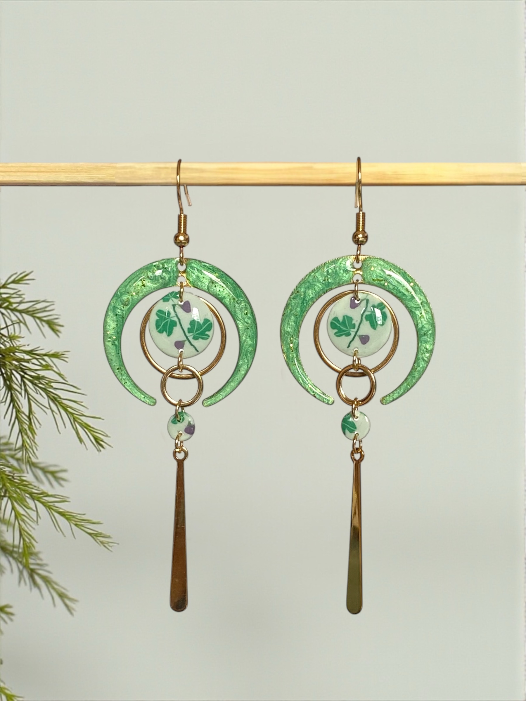 Chaque bijou est recouvert de résine. Pour préserver son éclat, je vous recommande de ne pas l’exposer à la lumière du soleil de façon prolongée. Un rayonnement trop vif pourrait altérer les couleurs.