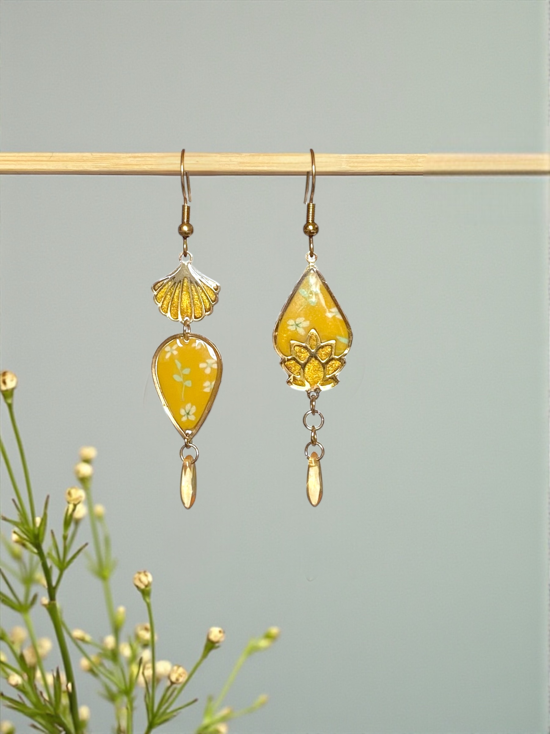 Chaque bijou est recouvert de résine. Pour préserver son éclat, je vous recommande de ne pas l’exposer à la lumière du soleil de façon prolongée. Un rayonnement trop vif pourrait altérer les couleurs.